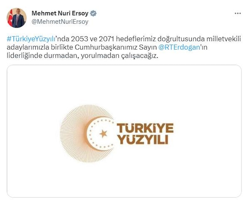 Bakan Mehmet Nuri Ersoy, sosyal medya hesabından yaptığı paylaşımda şunları söyledi:
