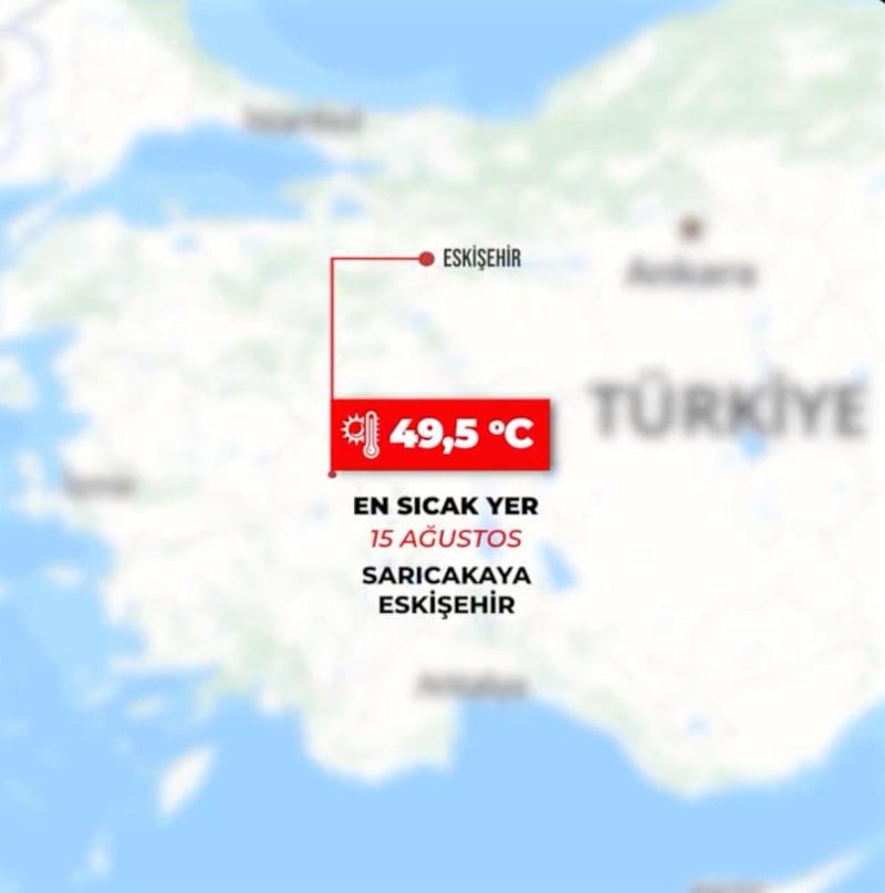 En yüksek sıcaklık 49,5 derece ile Eskişehir Sarıcakaya,