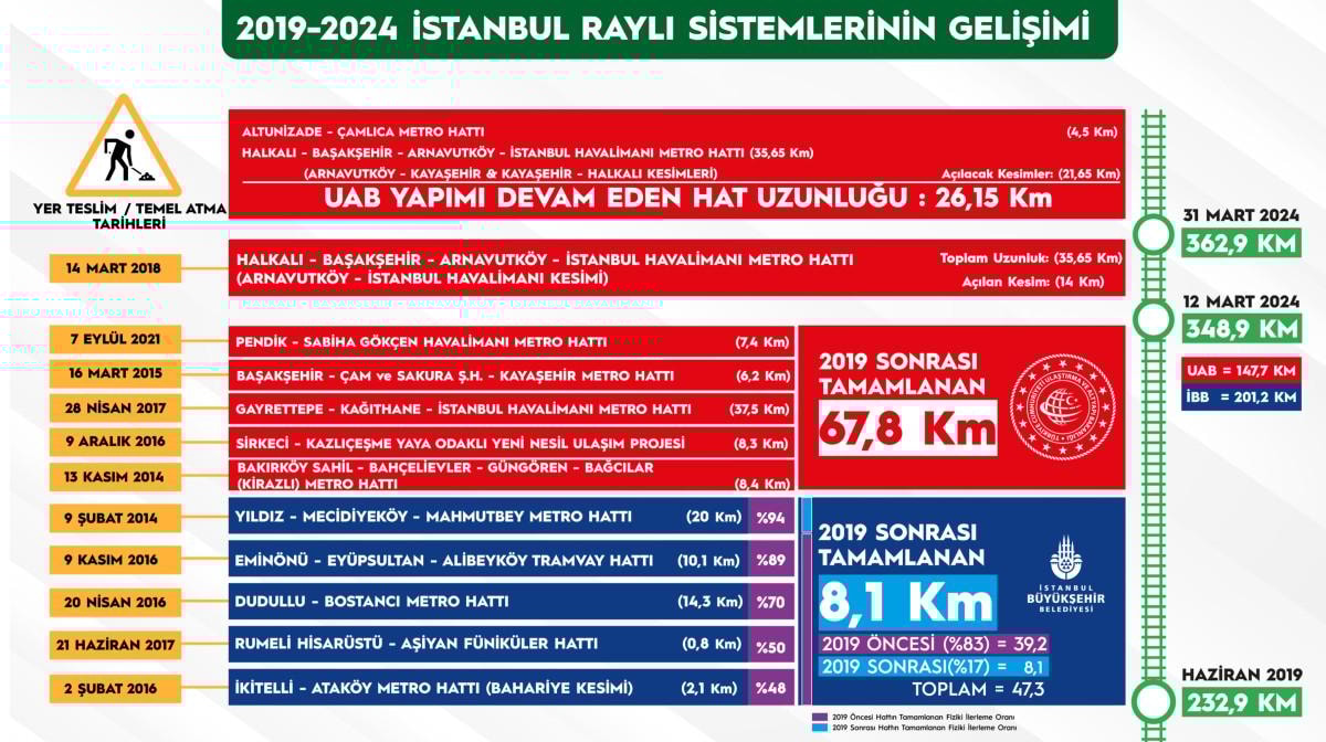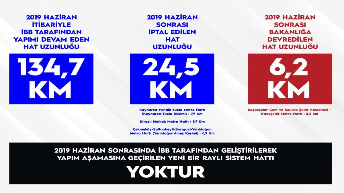 "2019 sonrasında İBB tarafından geliştirilerek yapım aşamasına geçirilen yeni bir raylı sistem hattı yoktur"