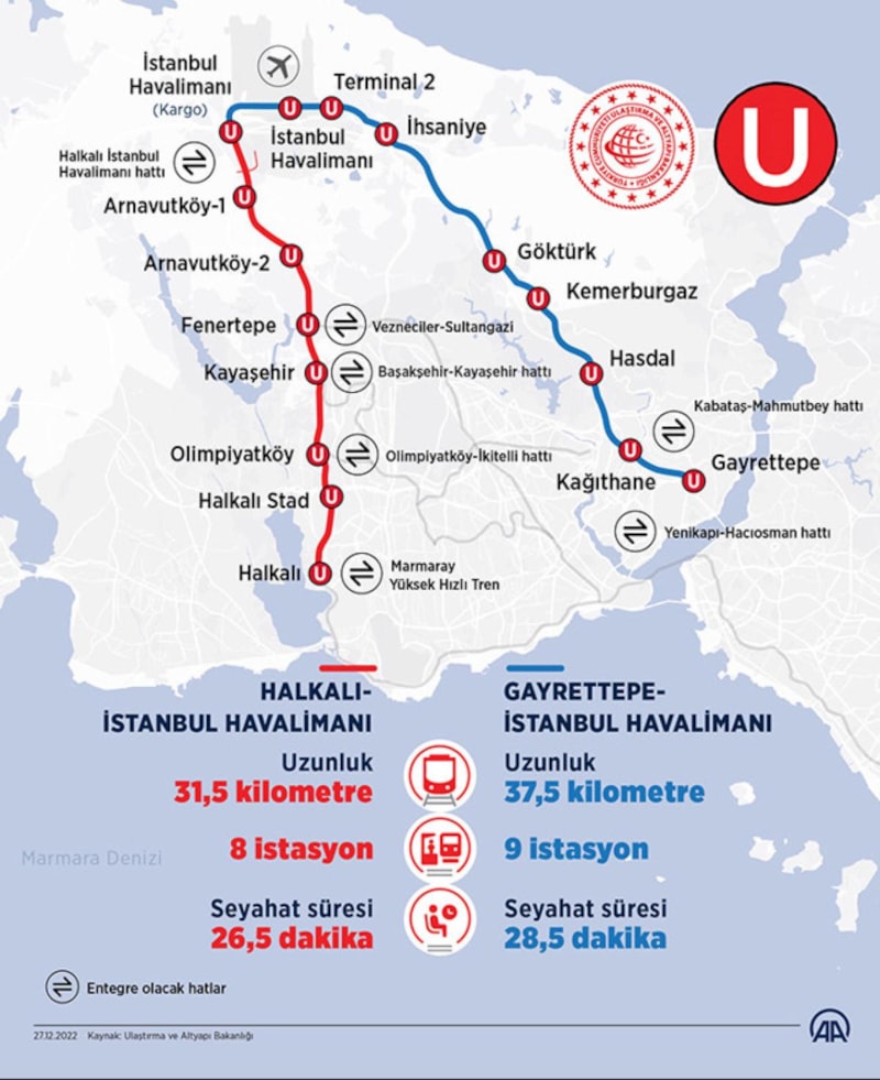Uraloğlu tamamlanan proje ile; ‘Gayrettepe – İstanbul Havalimanı’ arası seyahat süresinin 30 dakika, Göktürk-Mahmutbey arası seyahat süresinin 38 dakika, Tekstilkent-İstanbul Havalimanı arası seyahat süresinin 45 dakika, Taksim – İstanbul Havalimanı arası seyahat süresinin 41 dakika, Taksim – Göktürk arası seyahat süresinin 26 dakika ve 4. Levent – İstanbul Havalimanı arasının ise 35 dakika olacağını ifade etti.