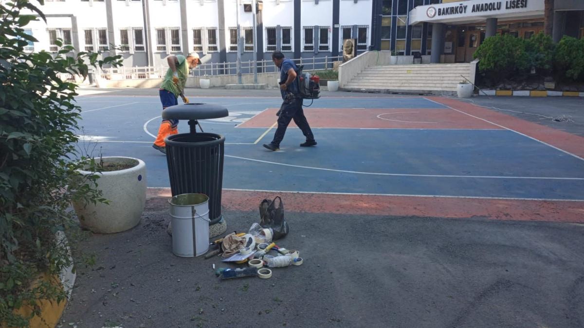 Başkan Özdemir, Bakırköy Belediyesi'nin gençlerin sosyalleşmesi için ihtiyaç duyduğu alana hizmet götürmeyince Bağcılar Belediyesi ekiplerini liseye göndererek saha çizgilerini yeniletti.
