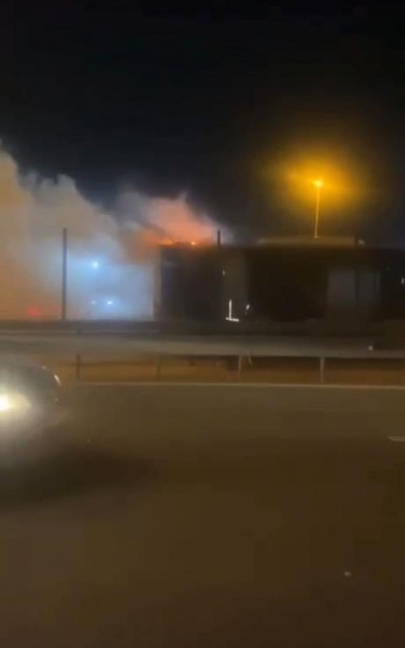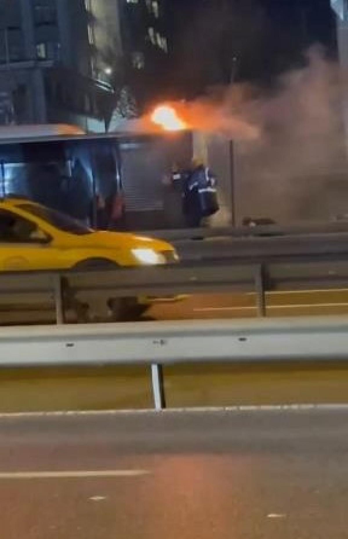 Bakırköy'de bir metrobüs, alev alev yandı.