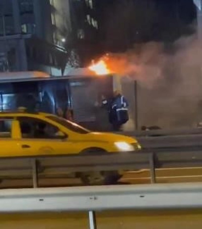Bakırköy'de metrobüs alev alev yanarken, itfaiye ekipleri yangını söndürdü. Metrobüs seferlerinde ise aksamalar yaşandı.