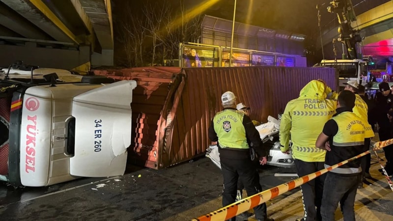 İstanbul Valiliğinden yapılan açıklamada, saat 18.45 sıralarında Bakırköy Yeşilyurt Hava Harp Okulu önündeki Havuzlu Kavşağı alt geçidinde devrilen kamyonun altında kalan otomobilde bulunan 2'si çocuk 4 kişinin hayatını kaybettiği belirtildi.