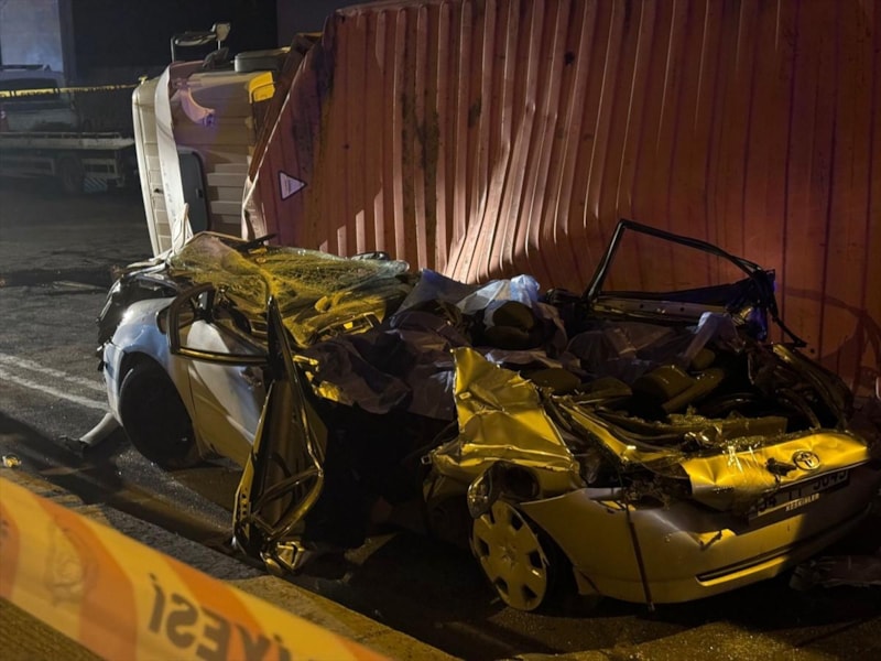 Bakırköy'de üst geçide çarpan tır, otomobilin üzerine devrildi. Otomobilde bulunan 4 kişi hayatını kaybetti.