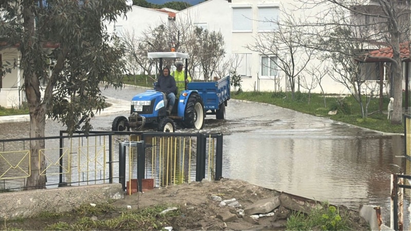 Burhaniye ilçesi Dalyan mevkiinde bulunan ve yazlık sitelerin yoğunlukta olduğu bölgede, lodos ve şiddetli yağış nedeniyle su baskınları yaşandı.