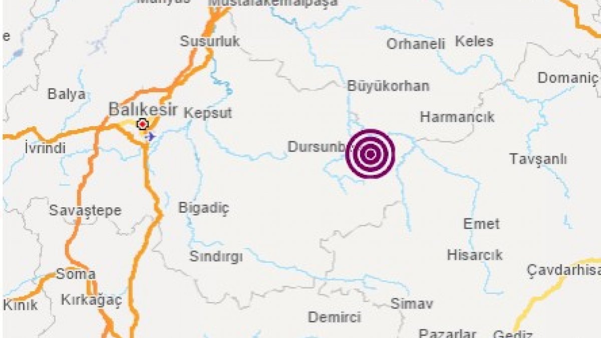 Balıkesir'de merkez üssü Dursunbey ilçesi olan 4.7 büyüklüğünde deprem meydana geldi.