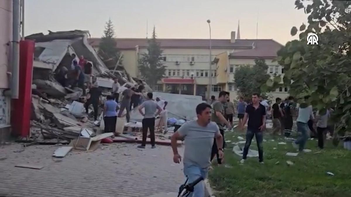 İlçemizde 10 binada yıkım meydana geldi. Ekranlara yansıyan binanın altındaki eczane kapalıydı, üstünde 6 kişi yaşıyordu. 4'ü kurtarıldı, 2 kişi aranıyor.