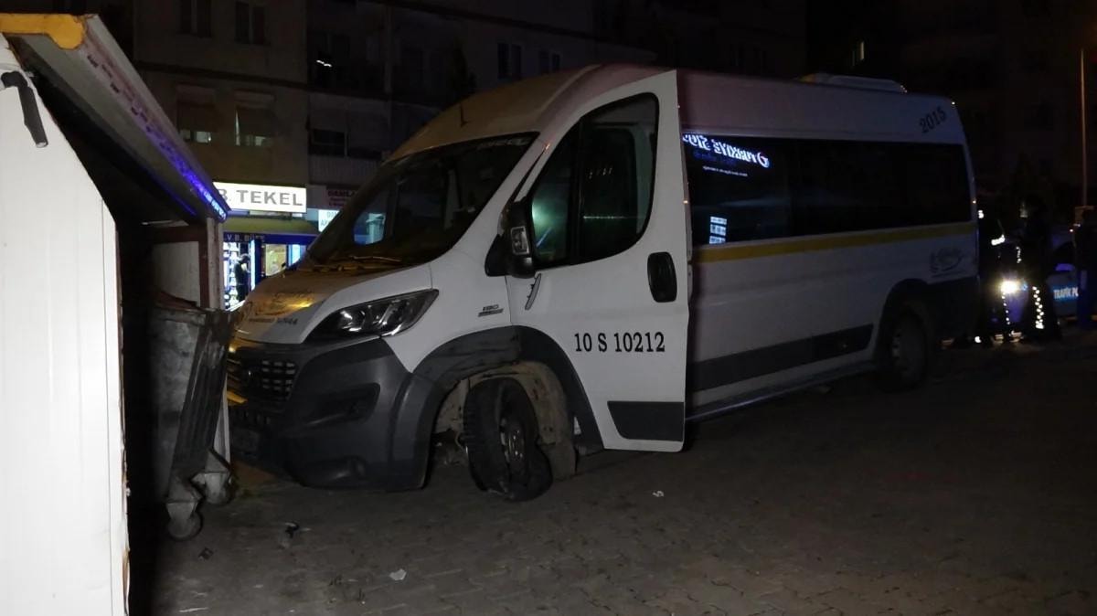 Ara sokaklardan hızla geçerken önce park halinde olan iki otomobile, ardından kaldırıma ve çöp kutularına çarpan minibüsün lastiği patladı.