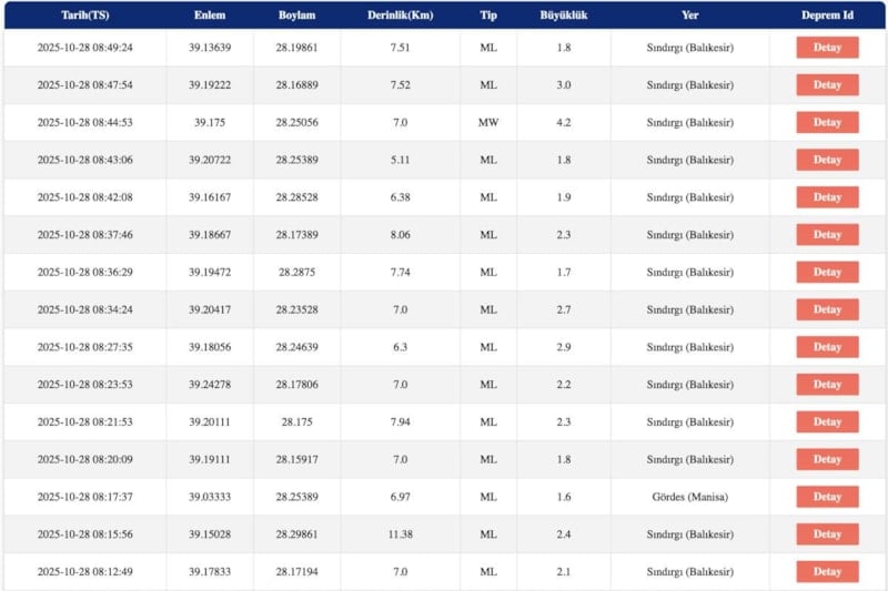 İşte Sındırgı merkezli saat 22.00'den sabaha kadar yaşanan 3.0 üzeri artçı sarsıntılar: