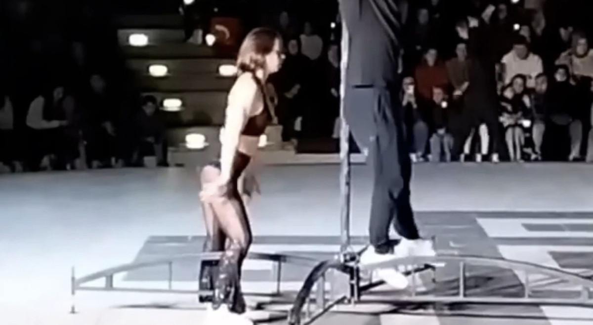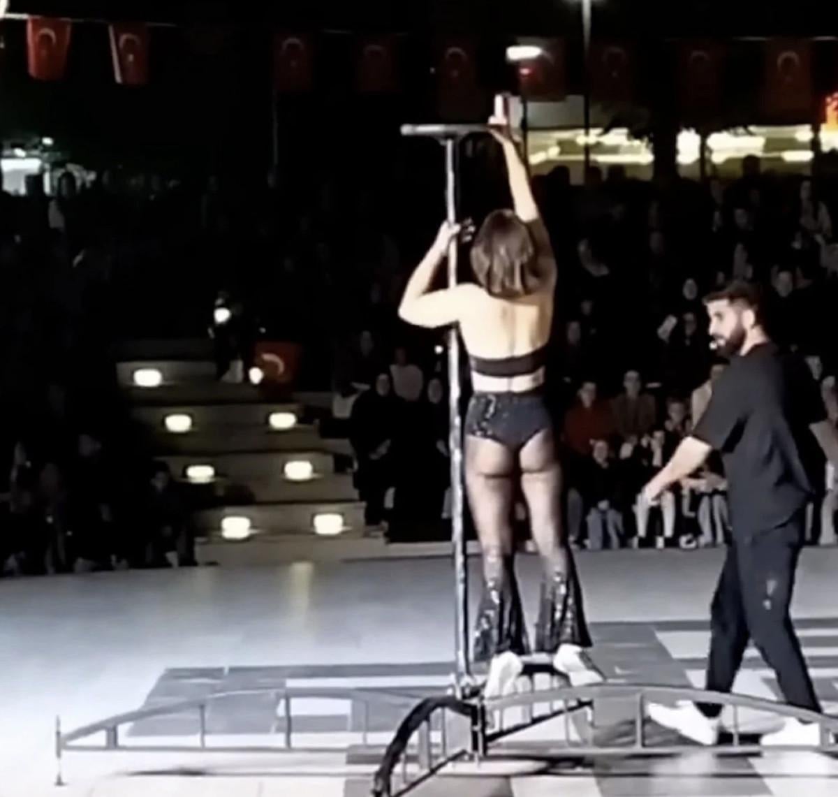 Bir kadının sahnedeki direğe tutunarak yaptığı hareketler, gösterileri izleyenleri şoke etti.