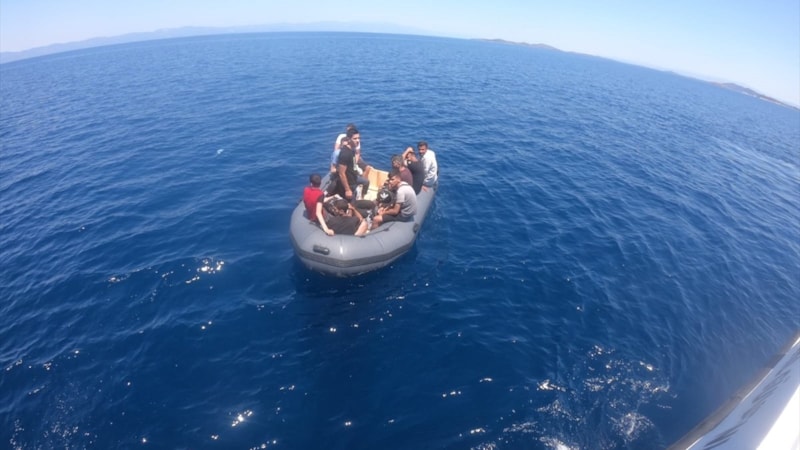 Sahil güvenlik ekipleri, Ayvalık ilçesi açıklarında düzensiz göçmenleri taşıyan lastik bot bulunduğunu tespit etti.