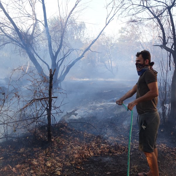 Yangın söndürme çalışmalarına zaman zaman tatilciler de destek verdi. Yazlık evlerin yoğun olarak bulundu bir alanda başlayan yangında yaklaşık 20 dönüm ağaçlık alan yandı.