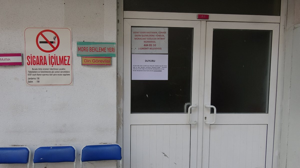 Öte yandan Edremit Devlet Hastanesi yönetimi, morg girişine, ‘19 Ocak 2010 tarih ve 27467 sayılı Mezarlık Yerlerinin İnşası ile Cenaze Nakil ve Defin İşlemleri hakkındaki yönetmelik gereği cenazelerin yıkanması ve defni ile ilgili tüm yükümlülük belediyelerimize ait olup, hastane bünyemizde cenaze yıkama hizmeti verilmemektedir’ yazılı duyuru yazısı astı.