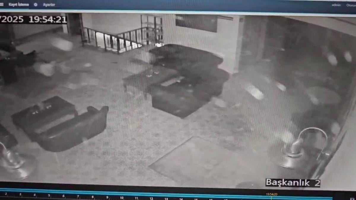 Güvenlik kamerasına yansıyan görüntülerde, sarsıntının şiddetiyle çevredeki bazı eşyaların devrildiği anlar dikkat çekti.