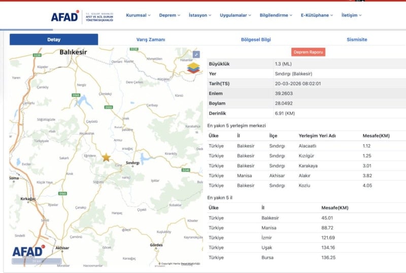 Bu kapsamda, Balıkesir'in Sındırgı ilçesinde bir deprem meydana geldi.