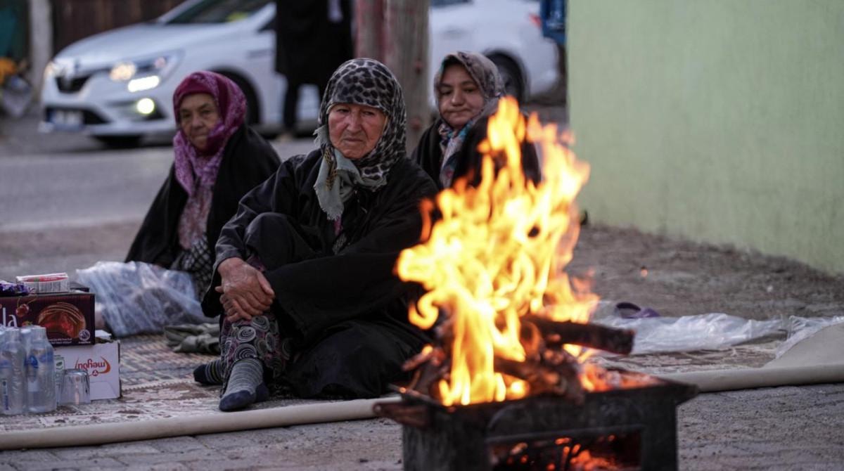 Tekrar yola devam ettik. Oğlum aradı, 'Durum kötü.' dedi. Gölcük Mahallesi'nin olduğu yerlerde dağlardan duman çıkmaya başladı. Geceden beri de sürekli sarsılıyor. Gece kesinlikle eve girmedik. Kapı hafiften açılmıştı, içeri baktım. Her yer harabe olmuş, duvarlar birbirine girmişti. Her 5 dakikada, 3 dakikada bir gürültülü bir şekilde sarsıntı devam etti. Bu şartlarda eve girmeyi düşünmüyoruz, korku var üstümüzde.