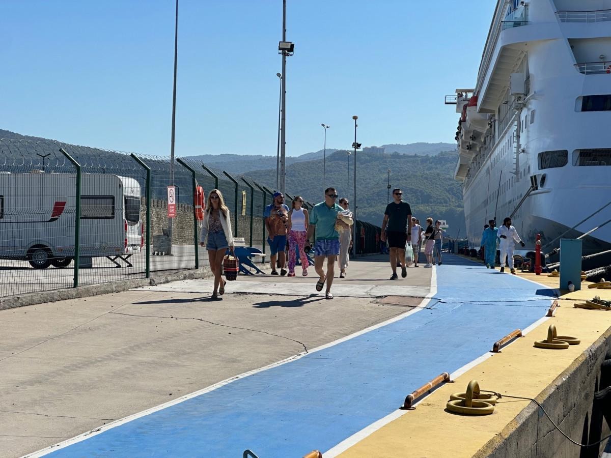 193 metre uzunluğunda ve 30 metre genişliğindeki kruvaziyerden inen turistler, işlemler sonrası gezmeye başladı.