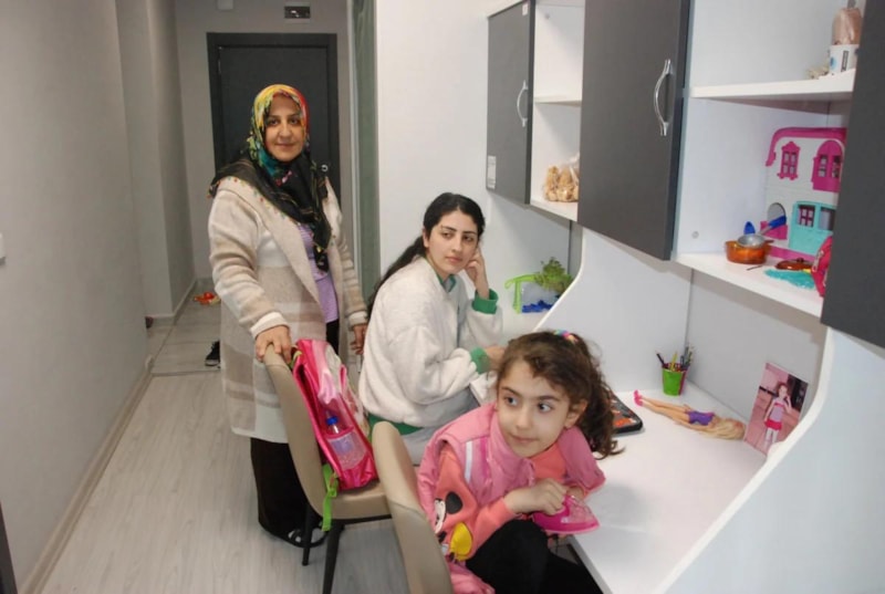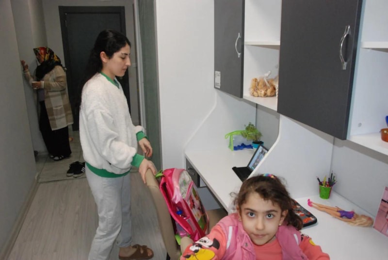 7 katlı binanın 6’ncı katında oturuyorduk. Bizim ev çok sallandı. Deprem çok uzun sürdü. Biz de ailecek tatbikatlarda yapılan 'çök-kapan-tutun' yaptık. Evden çıkacağımızı sanmıyorduk sonra dışarı çıkmayı başardık. Burası daha rahat olduğu için buraya geldik. Yurtta kardeşimle annemin her türlü imkanı var. Kardeşimi de ilkokula yazdırdık. Sosyal imkanlarımız da çok, burada olmaktan mutluluk duyuyoruz.
