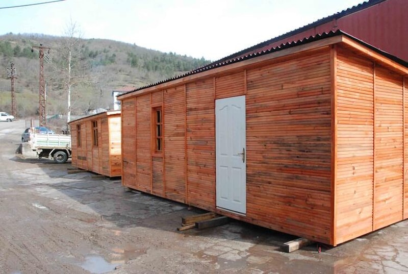 Çam ve köknar ağaçlarından yapılmaya devam edilen evlerin ihtiyaç duyulan kentlere yollanacağı belirtildi.