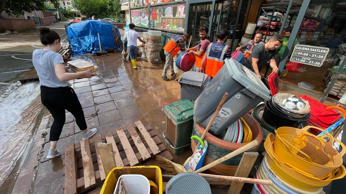 Balçık altında kalan sokak ve dükkanlardaki temizlik biterken kafe, çay bahçesi, lokanta, bakkal gibi bazı iş yerlerindeki çamur ile taşkın sularının temizlendiği ifade edildi.