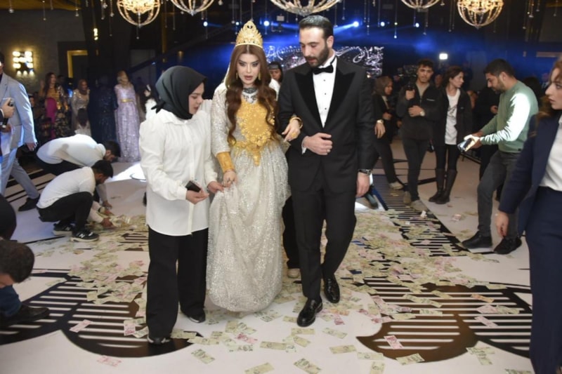 Nikahın ardından Irak’tan gelen davetliler, özel kutular içinde getirdikleri altınları takmak için uzun süre kuyruk oluşturdu.