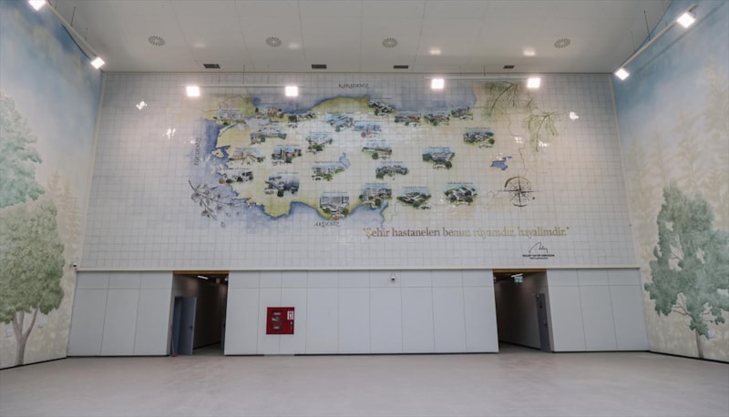 Bu istasyonda seramik duvarda Türkiye haritası yer alıyor. Bu haritada ülke genelinde şehir hastaneleri bulunan iller yer alıyor. Ayrıca rölyef duvarlarda şehir hastanelerinin bulunduğu illeri simgeleyen ağaç resimleri de yolcuları karşılıyor.
