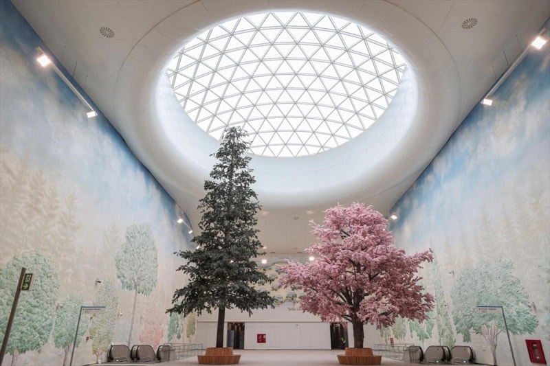 Öte yandan istasyonda İstanbul'u temsilen yapay çam, Japon kültüründe büyük bir öneme sahip olan ve bu ülkenin ulusal simgeleri arasında yer alan sakura ağacı bulunuyor.