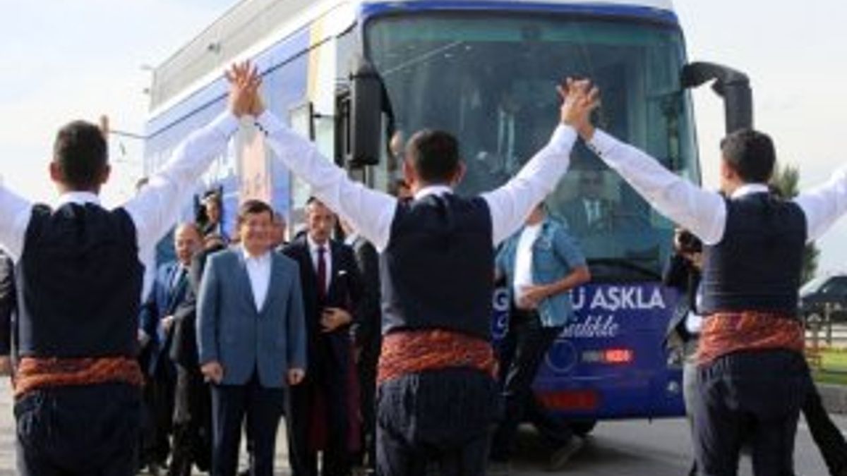 Başbakan Davutoğlu’nu Erzurum havalimanında Vali Ahmet Altıparmak, Büyükşehir Belediye Başkanı Mehmet Sekmen, AK Parti İl Başkanı Fatih Yeşilyurt ve milletvekili adayları karşıladı. Başbakan Davutoğlu’nun konvoyu kent merkezi girişinde ETÜ kavşağında atlı cirit ekipleri ve halk oyunları ekiplerince karşılandı. Otobüsten inerek atlı ciritçiler ile bir süre sohbet eden Başbakan Davutoğlu, hatıra fotoğrafı çektirdikten sonra otobüse binerek il merkezine doğru hareket etti.