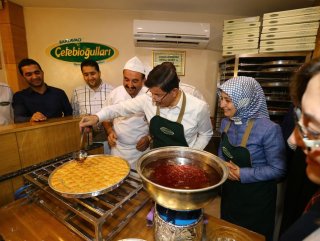 Çarşıda bir baklavacıya giren Başbakan Davutoğlu burada baklava şerbeti hazırladı, daha sonra vatandaşlara baklava ikram etti.