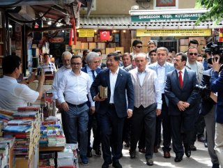 Davutoğlu'na, Sahaflar Çarşısı'ndaki ziyaretinde, kitap ve yağlı boya portresi hediye edildi.