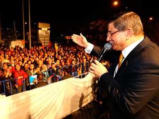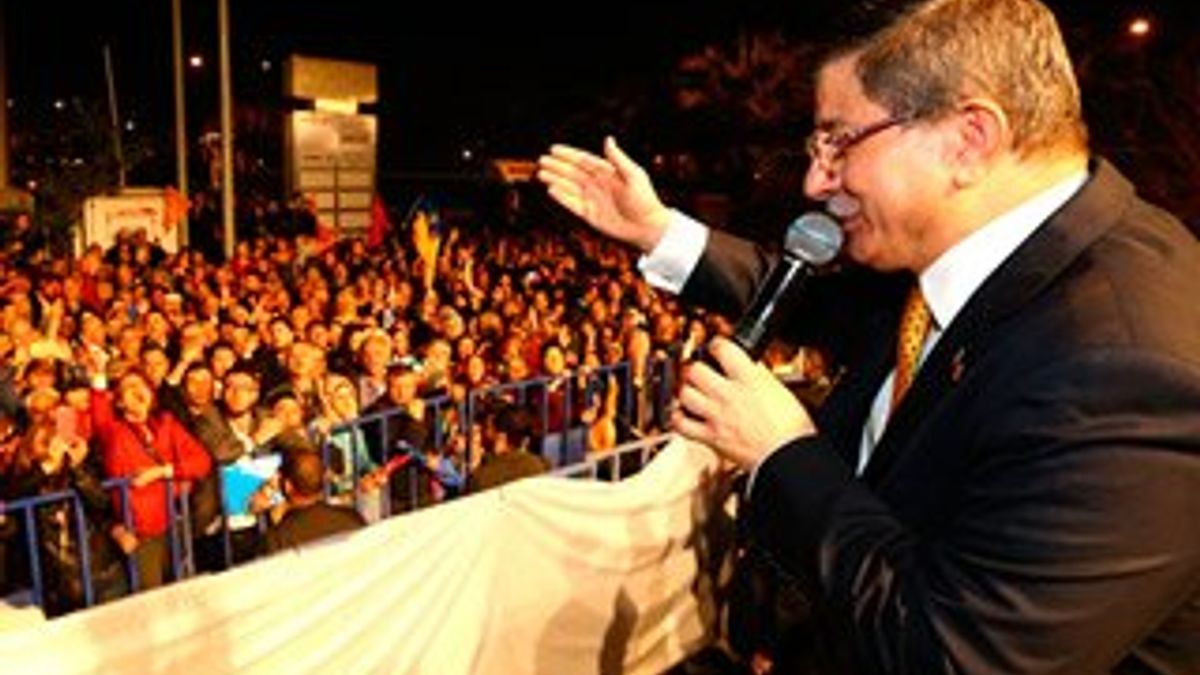 Meydandakilerin "Onlar konuşur, AK Parti yapar" sloganlarına eşlik eden Davutoğlu, "AK Partili neferler konuşmaya başladı mı sesleri gür çıkacak. Dün bizim sesimiz Brüksel'de sesimiz gür çıktı. Bugün İzmir'de gür çıkıyor, hafta sonu Van'da gür çıkacak. Bizim sesimizi kısamayacaklar. Bizim yürüyüşümüzü durduramayacaklar. Türkiye'nin yükselişine set çekemeyecekler" ifadelerini kullandı.İzmir'i, Başbakanlık Ofisinin olduğu üçüncü kent yaptıklarını dile getiren Davutoğlu, aynen Ankara'da olduğu gibi hükümet çalışmalarını İzmir'de de yürüteceğini söyledi.