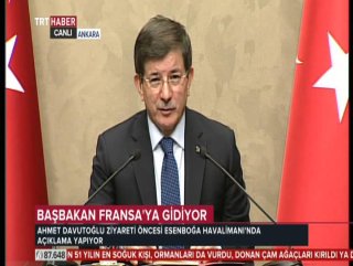 Başbakan Davutoğlu Paris'e hareketi öncesinde Esenboğa Havalimanı'nda düzenlenen basın toplantısında konuştu.