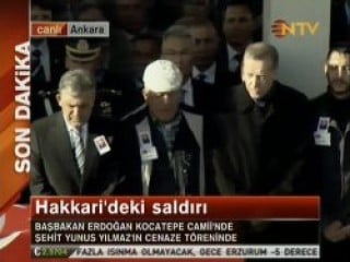 Hakkari'de şehit düşen askerin Kocatepe Camii'nde düzenlenecek cenaze törenine Cumhurbaşkanı Abdullah Gül ve Başbakan Recep Tayyip Erdoğan da katıldı.. Başbakan Erdoğan uzun zaman sonra ilk defa bir şehit cenazesine katıldı..