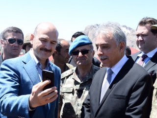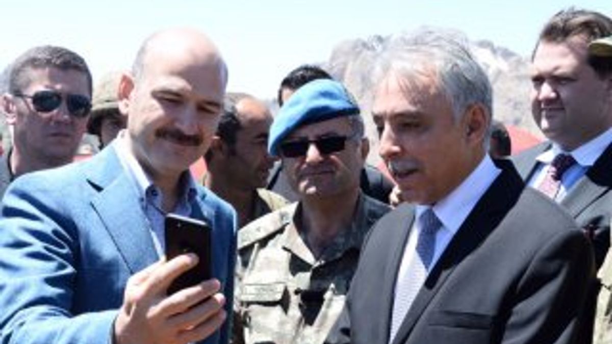 İçişleri Bakanı Süleyman Soylu, Hakkari'nin Çukurca ilçesindeki 2522 rakımlı İkiyaka Üsbölgesi'nde askerlerle bir araya geldi.