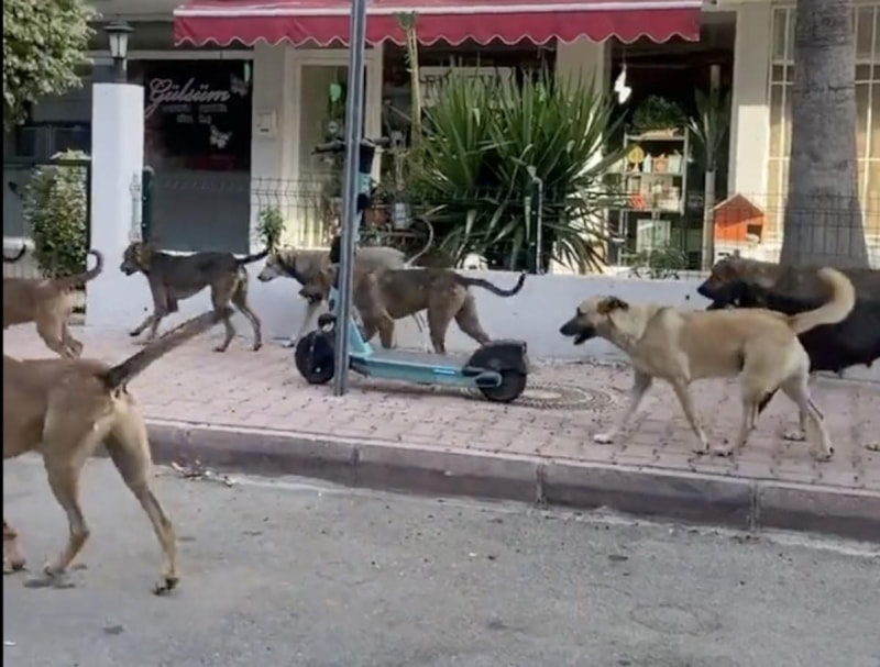 Muratpaşa ilçesinde yaşanan olayda, köpek sürüsünün başıboş halde sokakta ilerlemesi tehlike oluşturdu.