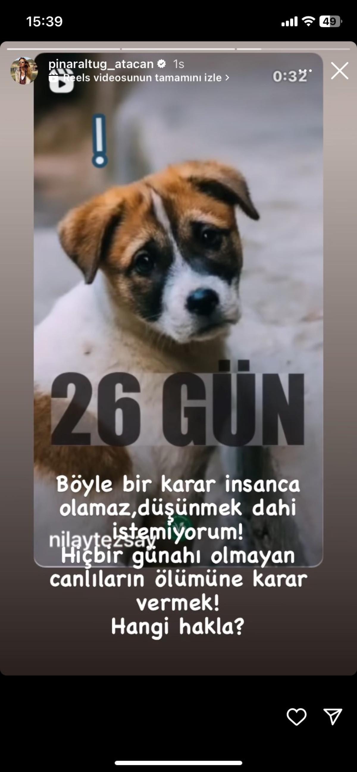Altuğ, sosyal medya hesabından yaptığı paylaşımda "Böyle bir karar insanca olamaz, düşünmek dahi istemiyorum. Hiçbir günahı olmayan canlıların ölümüne karar vermek! Hangi hakla?" ifadelerini kullandı.