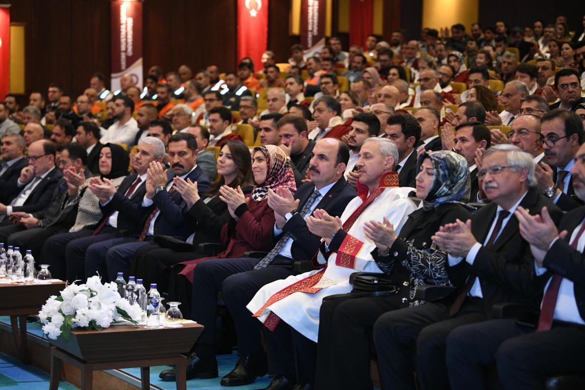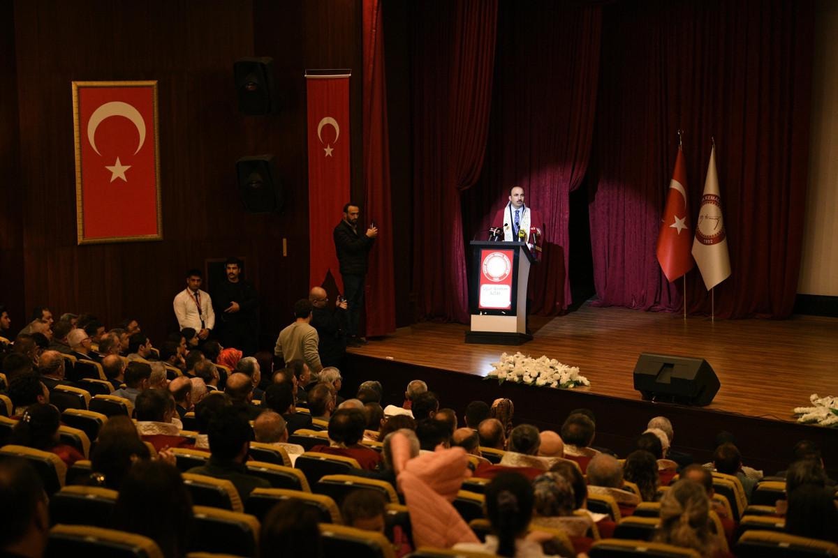Bunun çok küçük bir örneği olarak ifade etmek isterim ki; akademik ve idari personelimiz, Konya Büyükşehir Belediyesinin katkılarıyla kampüsümüzde inşa edilen geçici barınma alanlarıyla yeniden bir yuvanın sıcaklığına kavuşmuştur. Depremlerden sonra burada kalıp elini taşın altına koyanlar şahittir; yüzümüzü sağa dönsek Konya Büyükşehir Belediyesinin bir aracını, sola dönsek bir personelini yanımızda bulduk. O günlerde benliğimize sirayet eden yetimlik hissini, bu infak teselli etmiştir. Kutsal kitabımızda ‘Mallarını Allah yolunda harcayanların örneği, her başağında yüz tanenin bulunduğu yedi adet başak çıkaran bir tohum tanesi gibidir’ buyurulmaktadır. Bu vesileyle Konya halkının yaptığı kıymetli infakı ‘her başağında yüz tanenin bulunduğu yedi adet başak çıkaran bir tohum tanesine’ dönüştürmesini Yüce Rabbimizden niyaz ediyorum. Sayın Başkanım, bugün şahsınıza tevdi edeceğimiz fahri doktorayla attığımız bu adım, sadece geçmişteki desteklerinizin değil, aynı zamanda gelecekteki dayanışmamızın da bir sembolüdür. Bu anlamlı törenin, bir kez daha birlik ve dayanışmanın ne kadar güçlü bir değer olduğunu göstermesini temenni ediyorum.