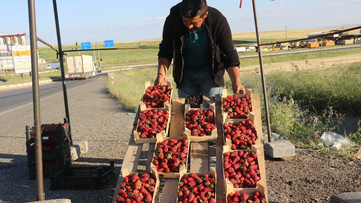 Ürettiği çilekleri Diyarbakır-Bingöl karayolunda satışa çıkartan genç girişimci, yılda dört kere verim aldığı satışlardan memnun olduğunu dile getirdi.