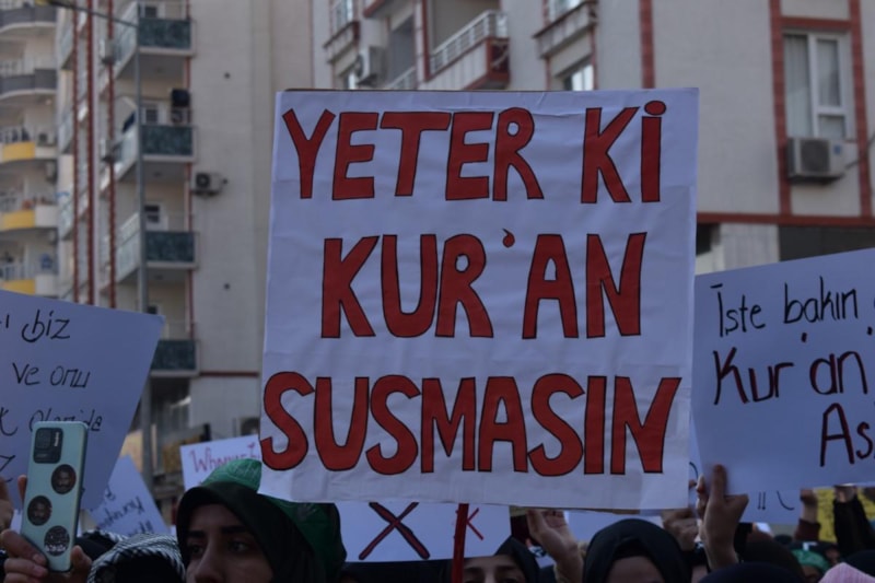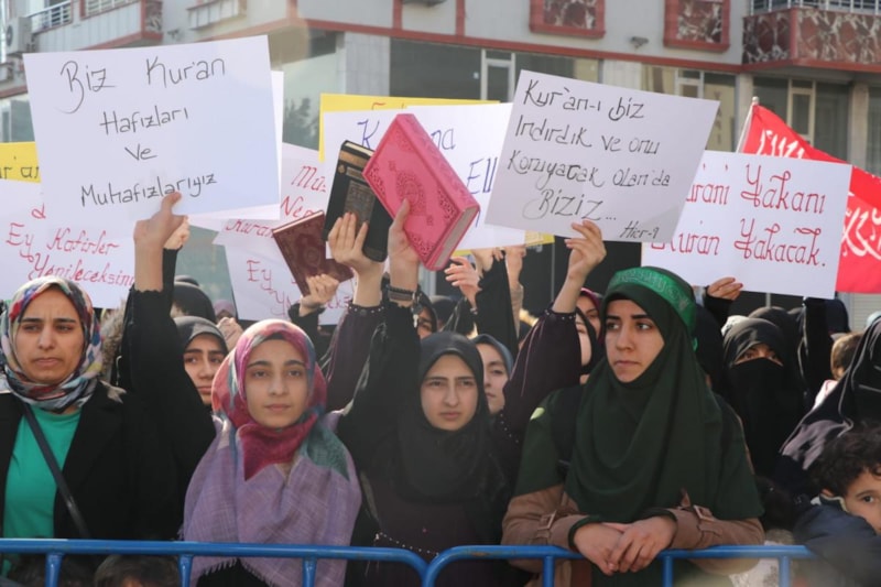 İsveç'te Danimarka ve İsveç çifte vatandaşı, polis eşliğinde İslam'ın kutsal kitabını hedef alırken Kuran-ı Kerim yakılması, Batman’da binlerce kişinin katıldığı mitingle protesto edildi.