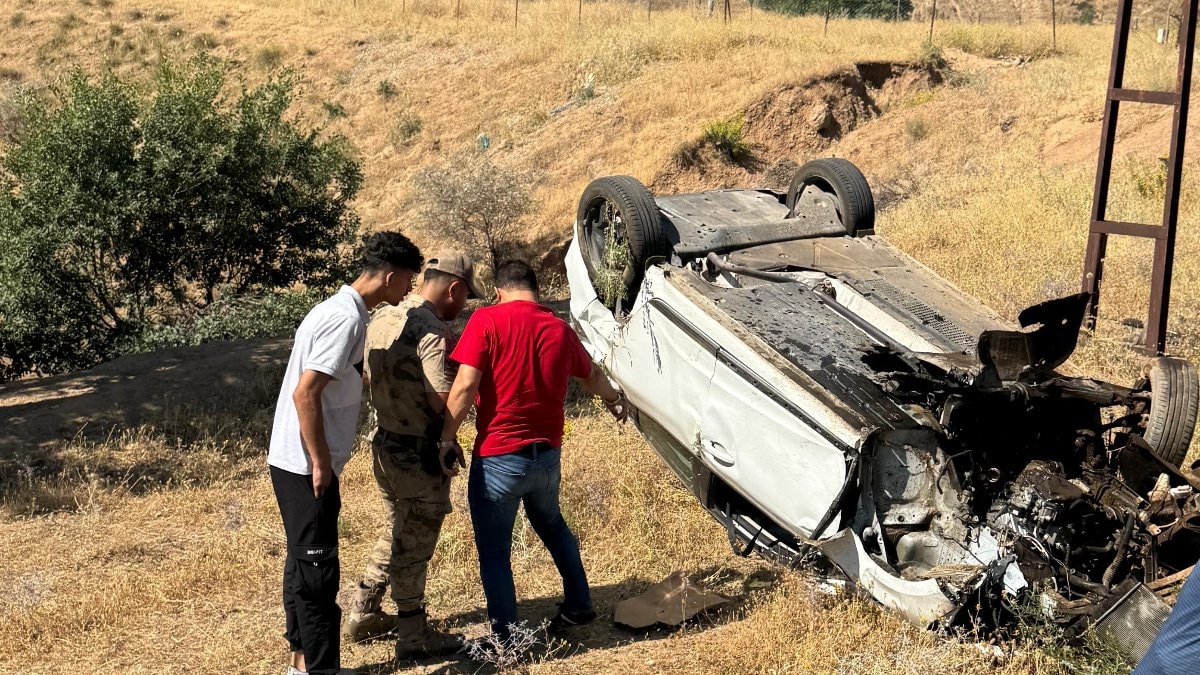 Seyir halindeki otomobil, sürücüsünün direksiyon hakimiyetini kaybetmesi sonucu takla atarak yol kenarına savruldu.