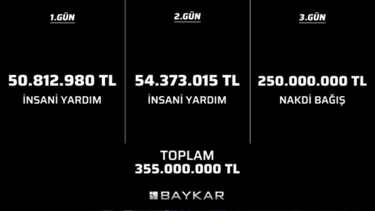 Sosyal medya hesabından yaptığı yardımı duyuran BAYKAR paylaşımında şu sözlere yer verdi: