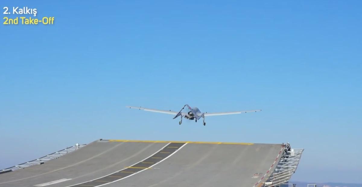 Bayraktar TB3, dün Çanakkale açıklarında seyreden TCG Anadolu gemisinde gerçekleşen ikinci uçuş testinde de iniş destek ekipmanı kullanmadan iki kez daha başarıyla iniş kalkış yaptı.