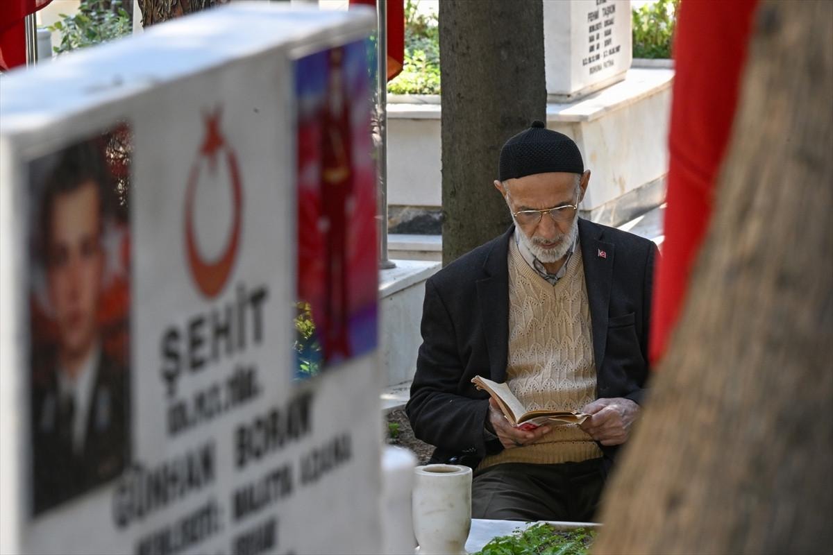 Bayram öncesinde arefe günü şehitliklere giden şehit yakınları, hem temizlik yaptı hem de Kur'an-ı Kerim okuyarak şehit ruhalarına hediye etti.