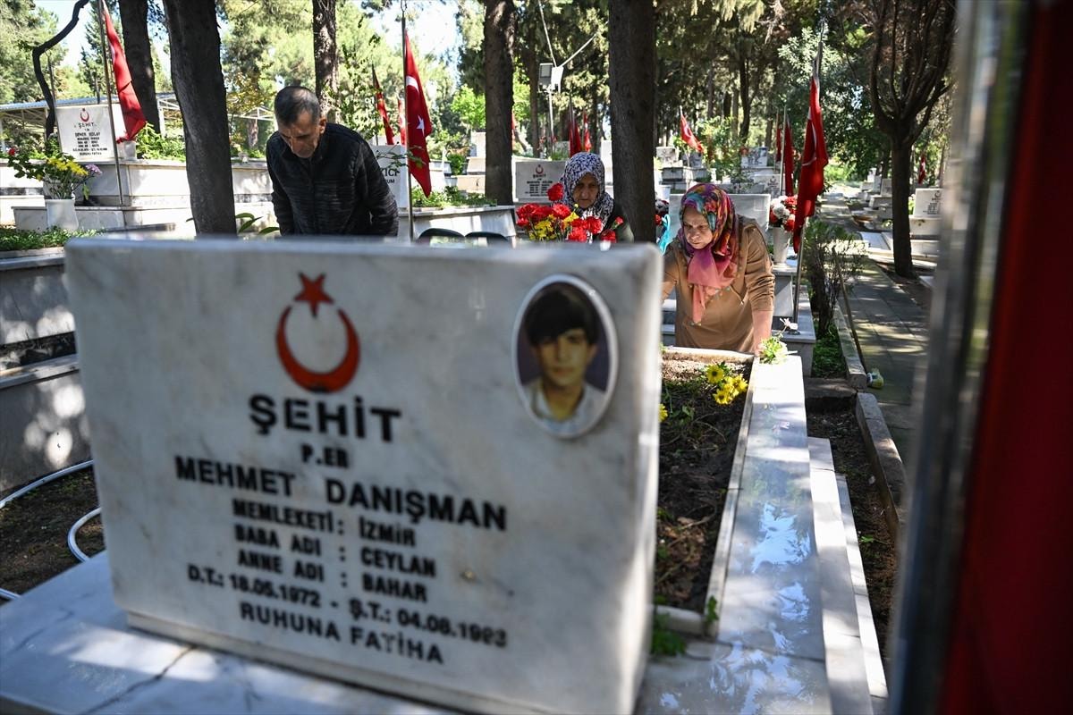 İzmir'de de şehit yakınları, Ramazan Bayramı arifesinde yakınlarının mezarlarına yaptıkları ziyarette duygulu anlar yaşadı.