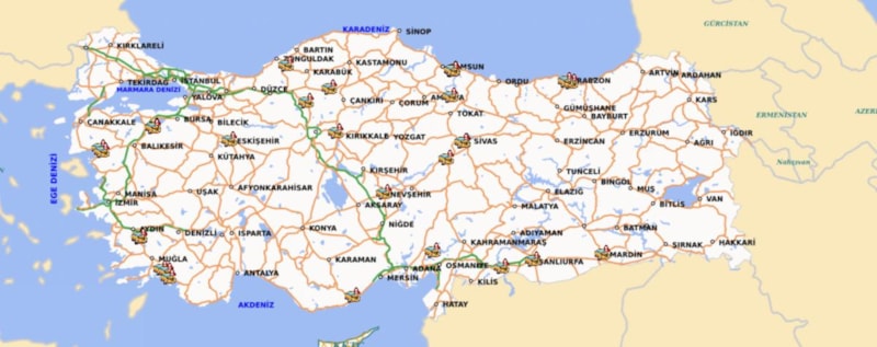 Trabzon, Nevşehir, Sivas, Şanlıurfa ve Mardin, merkezinde çalışma yapılan şehirler arasında.