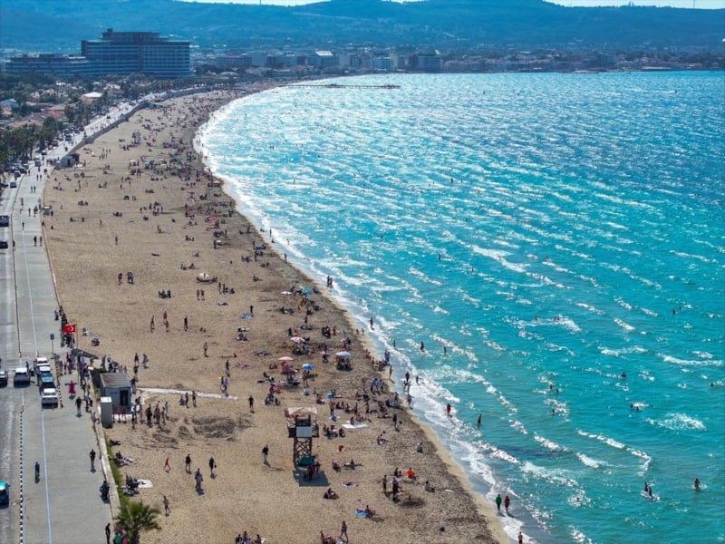 Öte yandan çok sayıda tatilci, deniz suyu henüz 19 derece olmasına rağmen denize girdi.