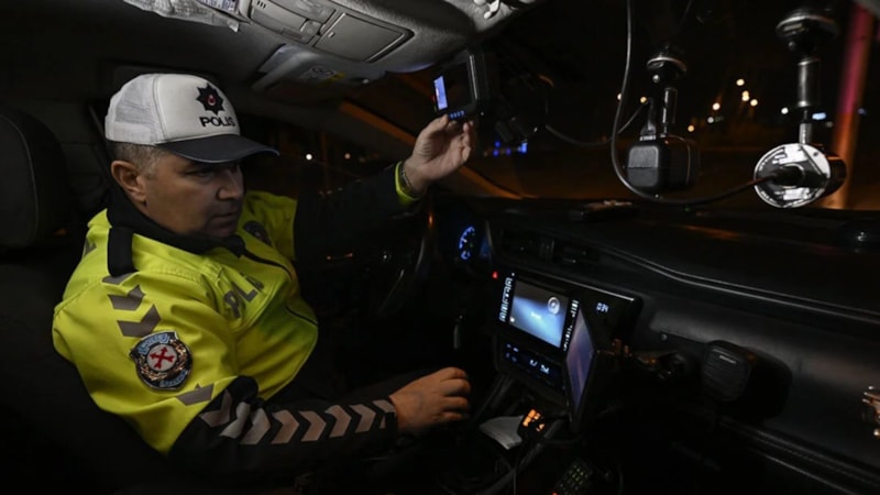 Bu kapsamda, Ankara'da Özal Bulvarı'nda mobil radar aracıyla gece yapılan denetim, görüntülendi.