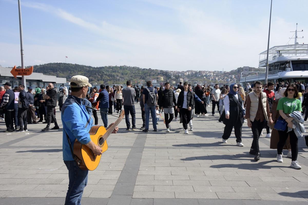 İstanbul'da bayram nedeniyle kabir ve ev ziyaretleri yapanlar, güneşli havayı değerlendirerek kentin tarihi ve turistik mekanları ile sahil kesimlerine gelenler yoğunluğa neden oldu.