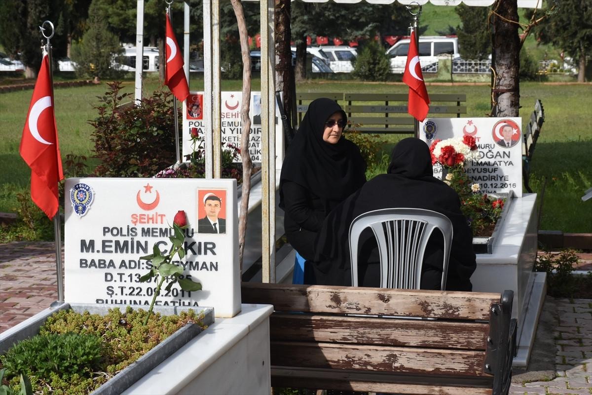 Çocuklarıyla birlikte gelen aileler, şehit yakınlarının mezarı başında dualar okudu, temizlik yaptı.